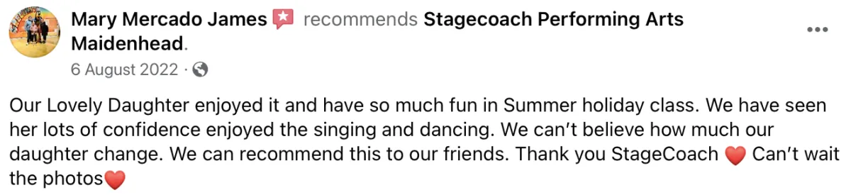 ✔️ Your Child would like to improve their Singing, Acting and Dancing, while also building confidence and social skills.